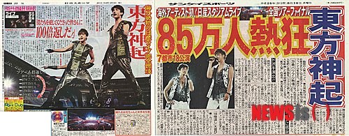 산케이스포츠 신문도 "동방신기로 인해 닛산스타디움에 열기가 소용돌이쳤다"면서 "이번 투어로 모은 85만명은 그들이 작년에 기록한 55만명을 경신하는 해외 아티스트 사상 최다 기록이 됐다"고 보도했다. 데일리스포츠 신문은 "K팝 붐을 견인해 온 동방신기 2명이기에 허락되는 '성지'에서 전력 퍼포먼스를 펼쳤다"고 언급했다.