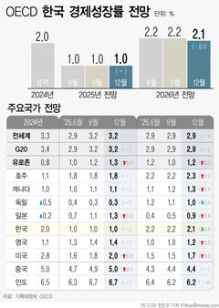 OECD, 올해 韓 성장률 1.0% 유지…내년 2.2%→2.1%