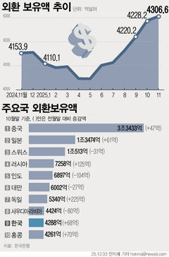 외환보유액 4300억달러 돌파…6개월 연속 증가