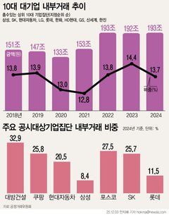 대기업 내부거래 비중 쿠팡 26%, 삼성 8.4%