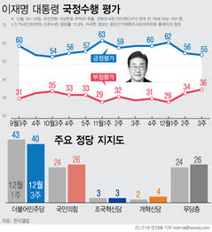 이재명 대통령 지지율 55%…민주당 40%, 국민의힘 26%