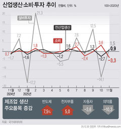 11월 산업생산 0.9%↑…전월 큰 낙폭 딛고 반등