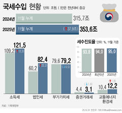 1~11월 국세수입 354조…전년比 38조↑