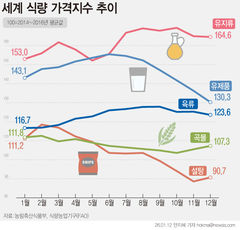 세계 식량가격지수 넉달째 내림세…유지류·유제품·육류↓