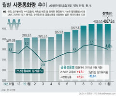 작년 11월 통화량 4057.5조…전년대비 4.8%↑