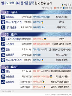 밀라노 동계올림픽 한국선수 경기 일정 (11일~13일)