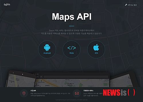 【서울=뉴시스】박영주 기자 = 다음커뮤니케이션이 웹 페이지나 모바일 앱에 지도 정보를 쉽게 삽입할 수 있는 API(다음 지도 애플리케이션 프로그램 인터페이스) 사이트를 열었다고 23일 밝혔다.