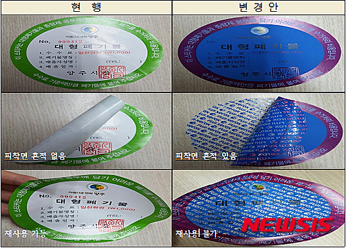 양주시는 이런 문제를 해결하기 위해 스티커를 떼어낼 경우 폐기물의 피착면에 흔적이 남아 수수료 납부 확인이 가능하도록 했다.