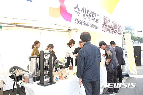 24일 수성대학교에 따르면 이 대학 제과제빵커피과 전공동아리 B.B.C(회장 김수영) 학생들과 지도교수들은 지난 21일부터 23일까지 개최된 2016 칠성종합시장 축제에 참여, 빵과 과자 등을 판매했다.