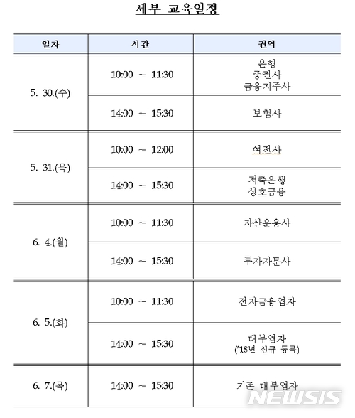 교육은 금감원에서 이날부터 다음달 7일에 걸쳐 총 9차례 실시된다.