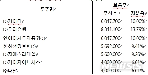 케이뱅크는 설립 당시 초기자본금에 대한 각 주주사별 보유 지분율에 따라 신주를 배정할 계획이다.