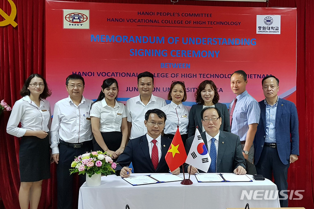 충북 괴산군 중원대학교는 11일 베트남의 하노이 하이테크 기술대학과 글로벌 인재양성을 위한 국제교류 협약을 했다고 밝혔다.