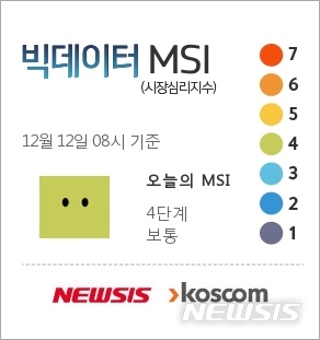 뉴시스와 코스콤이 공동으로 뽑아낸 빅데이터 MSI(http://m.newsis.com/stock.html, 모바일 전용)에 따르면 전 거래일 오후 4시부터 이날 오전 8시까지 집계된 코스피 MSI 레벨은 4단계로 전 거래일 대비 1단계 올랐다.