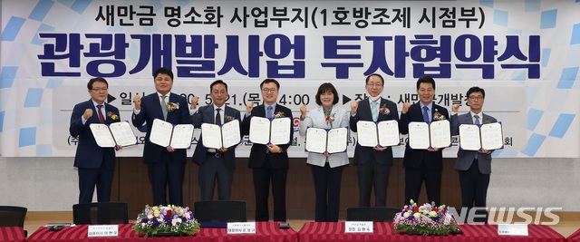 [군산=뉴시스]고석중 기자 = 새만금개발청이 21일 ㈜엔에스파트너스 컨소시엄(연합체)과 새만금 1호 방조제 인근 명소화 사업부지에 관광개발사업 투자협약을 체결했다.