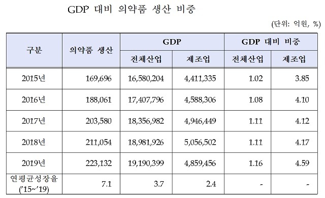 전 산업의 국내총생산(GDP) 연평균성장률은 3.7% 수준이다. 제조업은 2.4%다. 7.1%인 의약품은 제조업의 3배에 이르렀다.