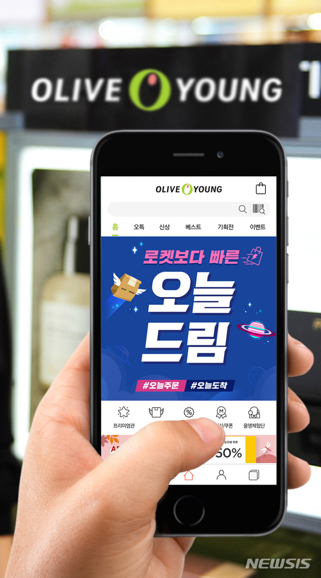 CJ올리브영은 2018년부터 당일 배송 서비스를 시행 중이다. '오늘드림' 서비스를 통해 주문하면 최대 3시간 내 제품을 받을 수 있다. 물류센터에서 제품을 보내지 않고 주문자 인근 매장에서 포장·배송해 효율성을 높였다. 특히 상품 수령 시간대도 지정할 수 있다. 오후 1시 이전 주문하면 당일 오후 3~4시 배송하는 '쓰리포', 오후 8시 이전까지 주문하면 당일 오후 10시부터 자정 사이 상품을 받을 있는 '미드나잇' 등 배송 옵션이 다양하다.