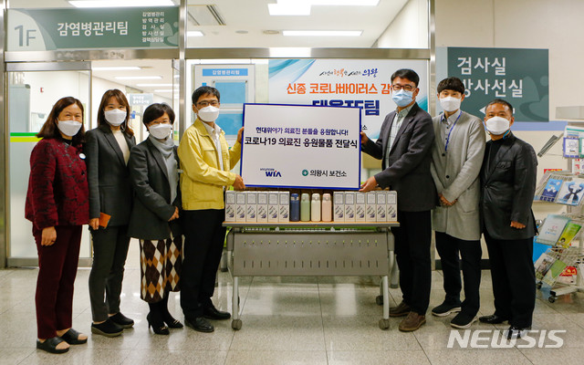 현대위아는 경기도 의왕·평택·안산시, 경상남도 창원시, 광주광역시, 충청남도 서산시 등 사업장이 위치한 지역 보건소에 선물과 성금을 나눠 전달했다.