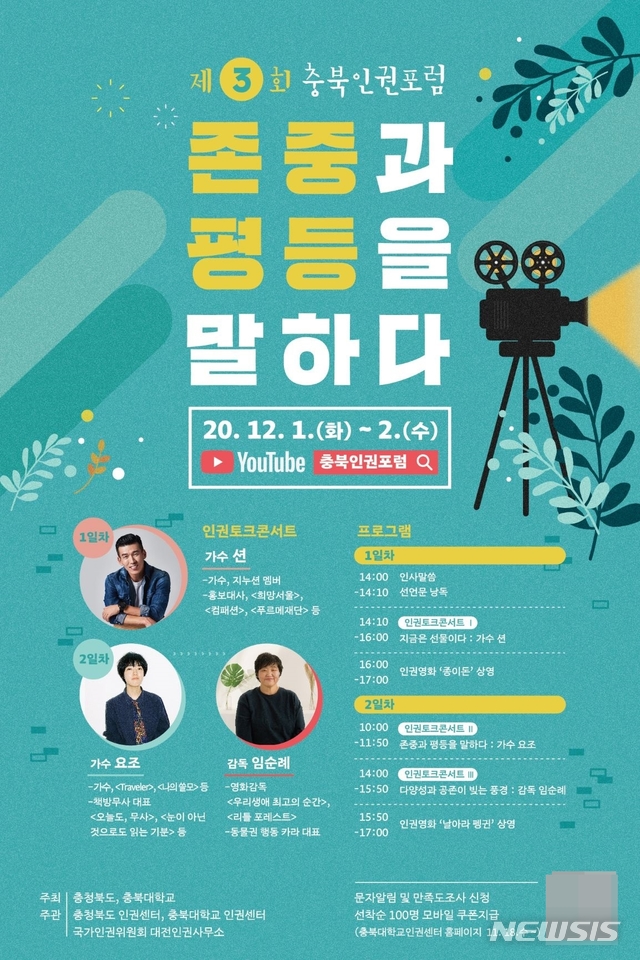 충북도 관계자는 "비대면 온라인으로 열리는 이번 포럼에 많은 도민이 참여해 인권의 중요성과 가치를 공감하길 바란다"며 "인권 존중 문화가 충북에 뿌리내리는 계기가 되길 기대한다"고 말했다.