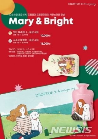 카페 드롭탑은 겨울 시즌에 어울리는 기획상품을 출시했다. 지난달 일러스트레이터 드로잉메리와 협업해 제작한 보온 물주머니와 블랭킷 판매를 개시했다. 보온 물주머니는 제품의 투입구에 뜨거운 물을 넣어 물주머니에서 퍼져 나오는 온기로 얼어붙은 몸을 녹여준다. 실내에서는 물론 휴대하기 간편해 야외 활동 시에도 유용하게 활용 가능하다. 또 블랭킷은 대형 사이즈로 전신을 넉넉하게 감싸주며 극세사 소재를 사용해 몸에 닿았을 때 부드러움과 포근함을 선사한다. 한편, 드로잉메리는 기분 좋은 순간과 즐거움을 그려내는 작가로 유명하며 국내 최초 아크릴 물감 컬러링북인 '메리(Merry)' 시리즈를 출간하는 등 다양한 방면에서 활동하고 있다.