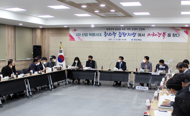 경북도는 22일 대구경북한뿌리상생위원회에서 지역 대학, R&D연구기관, 관계공무원 등 40여명이 참석한 가운데 '정책과제 발굴을 위한 대학 관계자 간담회'를 개최했다.