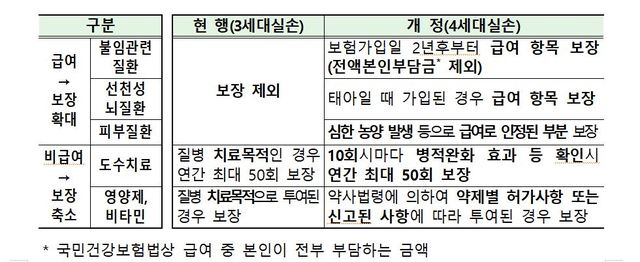 불임관련·선천성 뇌질환 등 보장 확대…도수치료·영양제 등 제한