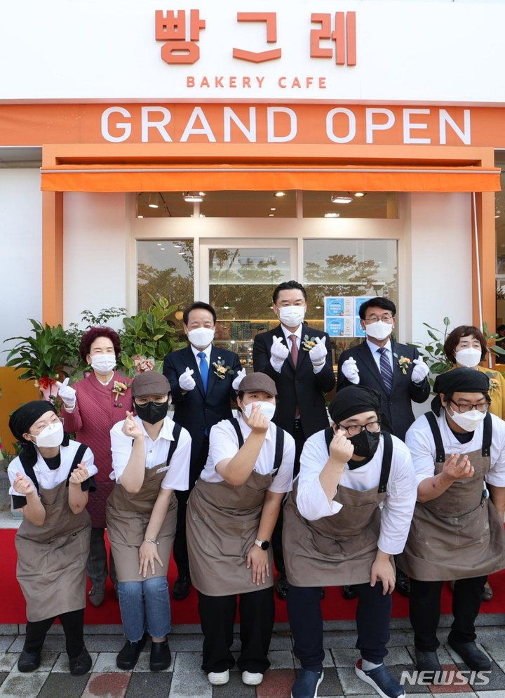 [서울=뉴시스] 김동현 기자 = 하이트진로는 광주광역시, 광주동구지역자활센터와 함께 베이커리 카페 빵그레 2호점의 정식 오픈을 알리는 개소식을 진행했다고 19일 밝혔다.