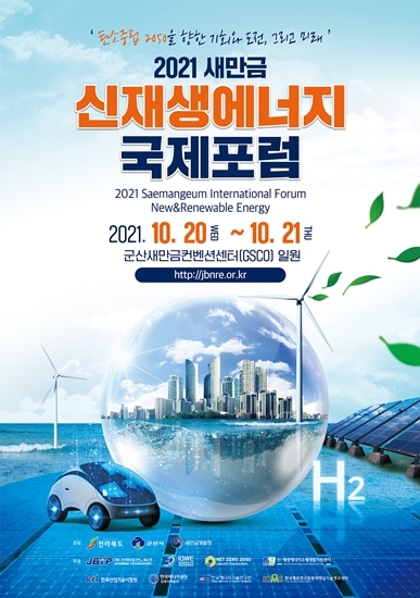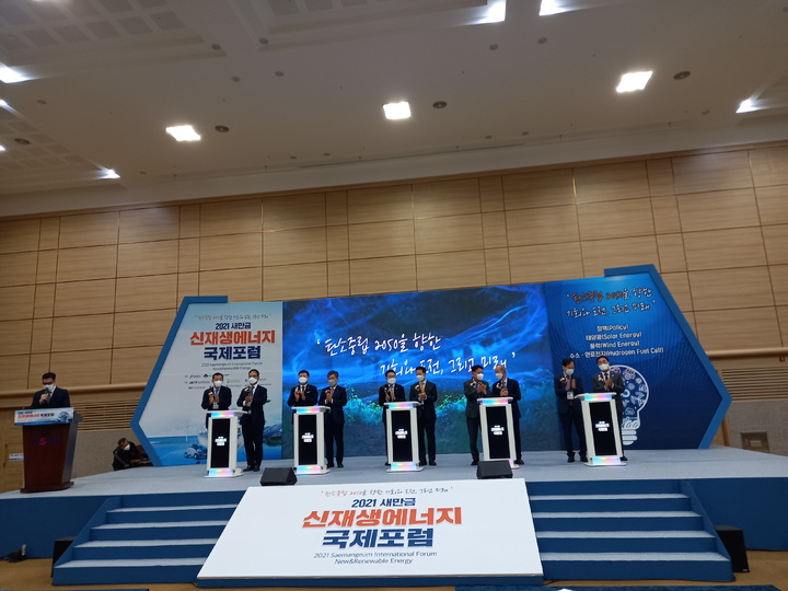 [군산=뉴시스]고석중 기자 = 전북 군산시가 '탄소중립 2050을 향한 기회와 도전, 그리고 미래'를 주제로 20일 군산새만금컨벤션센터에서 '2021 새만금 신재생에너지 국제포럼'을 개최했다.