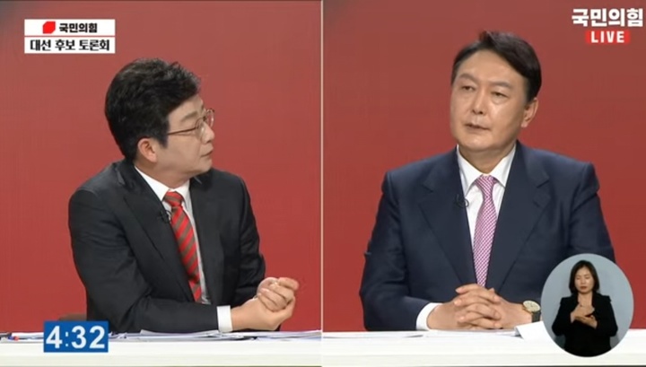 유 전 의원이 해당 사진을 놓고 계속 사실 관계를 묻자 윤 전 총장은 "토론을 하러 나오는 건지, 말꼬리를 잡으려는 건지"라며 불만을 표했다. 그는 또 "정책토론을 안 하고 딴 생각만 한다"며 유 전 의원을 공격하기도 했다.