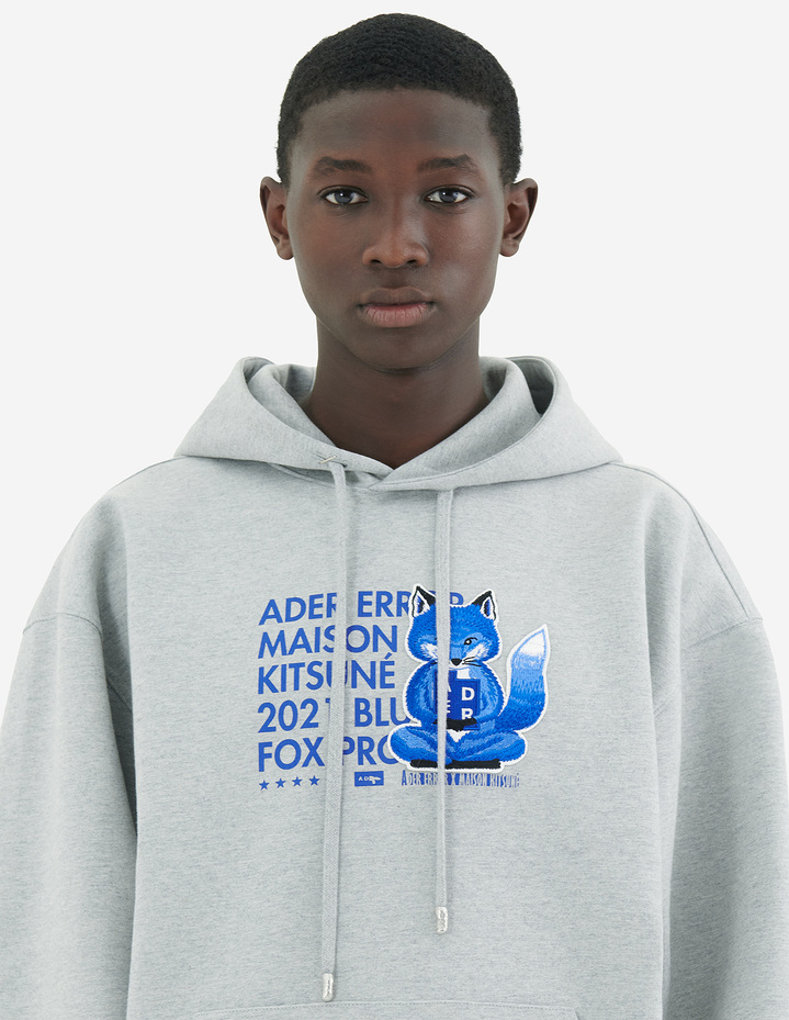 메종키츠네는 아더 에러와 함께 지난해 컬렉션에서 선보인 '더 블루이스트 폭스' 콘셉트를 확장했다. 파란 여우의 얼굴을 중심으로 표현한 디자인부터 몸과 동작을 세련되게 살린 디자인까지 프린트와 자수, 와펜 등을 통해 생동감 있게 묘사했다.