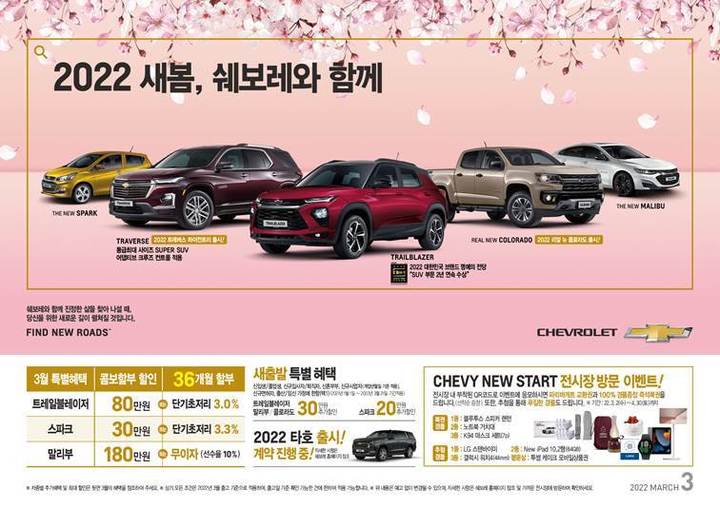 [서울=뉴시스] 이인준 기자 = 쉐보레(Chevrolet)가 이달 '2022 새봄, 쉐보레와 함께' 캠페인을 진행한다고 1일 밝혔다.