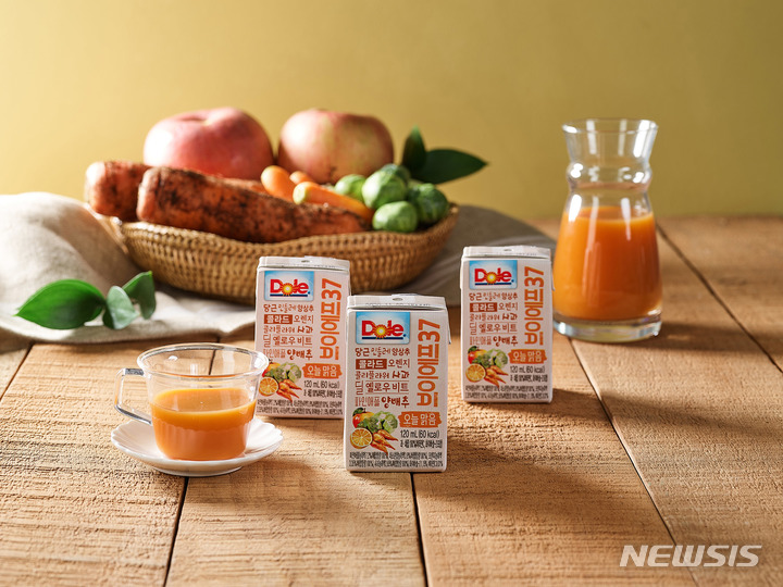 돌 코리아의 'VF37 오늘맑음'은 제품명 그대로 37가지의 신선한 채소와 과일을 블렌딩한 주스다. 레드비트, 서양민들레, 백포도 등 일반적으로 섭취하기 힘든 30가지 채소와 7가지 다채로운 과일을 활용해 맛과 영양을 균형 있게 담았다.