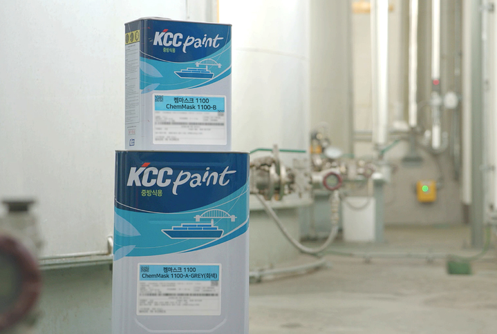 KCC가 최근 출시한 켐마스크 1100은 발전소, 석유화학 시설, 각종 설비 등에 적용되는 플랜트 도료로 뛰어난 내화학성이 특징이다. 고 내화학성을 바탕으로 각종 시설물의 부식을 방지해 형태 및 성능을 안정적으로 유지시킨다.