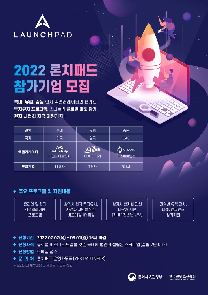 '론치패드'는 2017년부터 시작된 콘진원의 국내 콘텐츠 스타트업 해외 진출 지원 사업이다.
