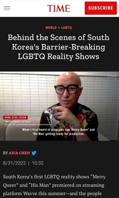 타임은 지난달 31일(현지시간) '대한민국의 장벽을 허무는 성소수자 리얼리티 쇼의 뒷이야기'(Behind the Scenes of South Korea's Barrier-Breaking LGBTQ Reality Shows)라는 제목의 기사를 게재했다. "메리 퀴어와 남의 연애는 대한민국 최초의 성소수자(LGBTQ) 리얼리티 쇼"라며 "이 쇼를 만든 사람들은 그들이 대한민국 성소수자 권리를 위한 긴 투쟁에 관한 인식을 높이는 데 기여하기를 바란다"고 전했다.