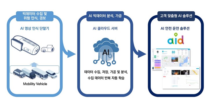 에이아이매틱스는 지난 2019년부터 aid 솔루션의 사고절감 효과를 실증하기 위해 택시를 대상으로 시범 사업을 개시했다. 이후 화물차, 버스, 공유차량 등으로 대상을 확대했다. 이를 통해 취득한 운전자 주행 데이터, 도로 환경 데이터 등을 정밀 분석해 운전자의 안전 운전 점수를 실시간 산정할 수 알고리즘을 개발했다.