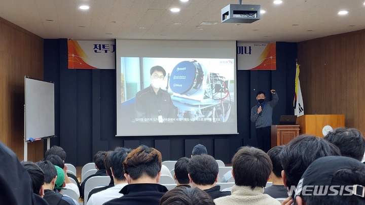 [사천=뉴시스] 차용현 기자 = 경남 사천시 소재 한국폴리텍대학 항공캠퍼스가 26일 오후 1시 교내 소강당에서 ‘전투기의 눈, 에이사 레이더(AESA RADER) 국산화 세미나’라는 주제로 특강을 진행했다.
