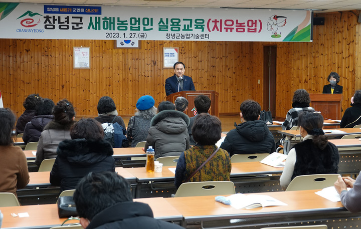 [창녕=뉴시스] 안지율 기자 = 경남 창녕군은 27일 새로운 기술을 신속하게 보급하고 농업인의 경쟁력을 강화하기 위한 새해 농업인 실용교육을 개강했다.