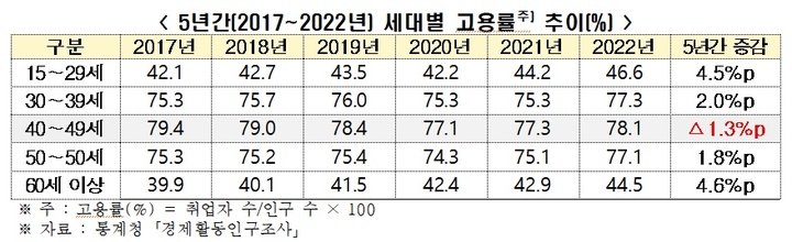 5년간 전 연령대 중 ‘40대’만 고용률 악화