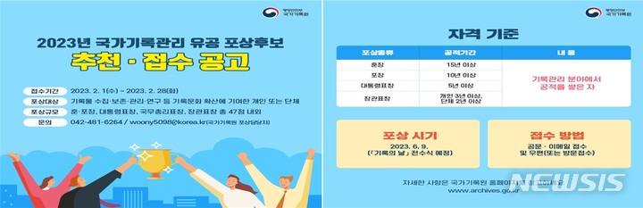 구만섭 국가기록원장은 "기록관리 발전에 공헌한 유공자들을 발굴·격려하는 이번 공모에 많은 참여와 관심 바란다"고 말했다.