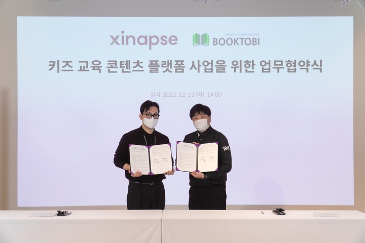 [서울=뉴시스] 오동현 기자 = 생성적 인공지능(AI) 음성기술 전문기업 자이냅스와 초등학교 전자도서관 플랫폼 북토비가 'AI 음성합성 기술 기반 키즈 콘텐츠 개발'에 대한 전략적 제휴를 체결했다고 31일 밝혔다.