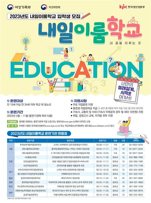 [서울=뉴시스]권지원 기자 = 여성가족부는 학업을 중단한 학교 밖 청소년에게 직업 훈련을 제공하는 '내일이룸학교' 입학생을 모집한다.