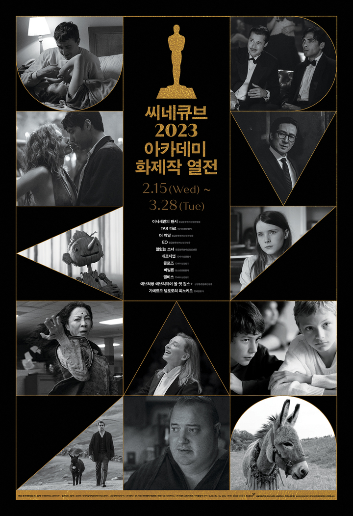 이번 행사에서 상영되는 영화는 'TAR 타르' '더 웨일' '이니셰린의 밴시' '클로즈' 'EO' '말없는 소녀' 등 국내 미개봉작과 함께 '에브리씽 에브리웨어 올 앳 원스' '엘비스' '바빌론' '애프터썬' '기예르모 델 토로의 피노키오' 등 기개봉작도 있다. 또 아카데미 후보에 오르지는 못했지만, 함께 보면 좋은 영화들도 이름을 올렸다. '헤어질 결심' '놉' '사랑할 땐 누구나 최악이 된다' 등이다. 상영작에 관한 자세한 정보는 씨네큐브 홈페이지 또는 모바일 앱, 공식 소셜미디어로 확인할 수 있다.