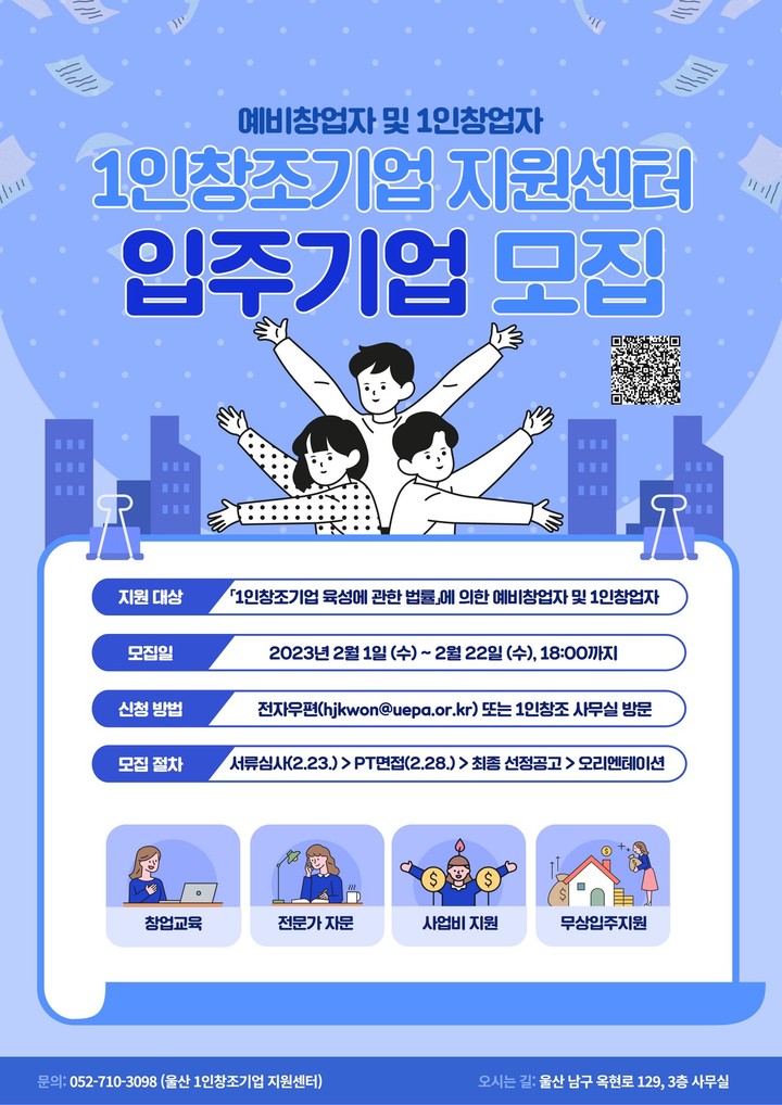 입주 공간은 울산벤처빌딩(남구 옥현로 129) 6층으로 1인 창업자의 창업 여건 개선과 안정적 성장을 돕기 위한 공간지원 사업이다.