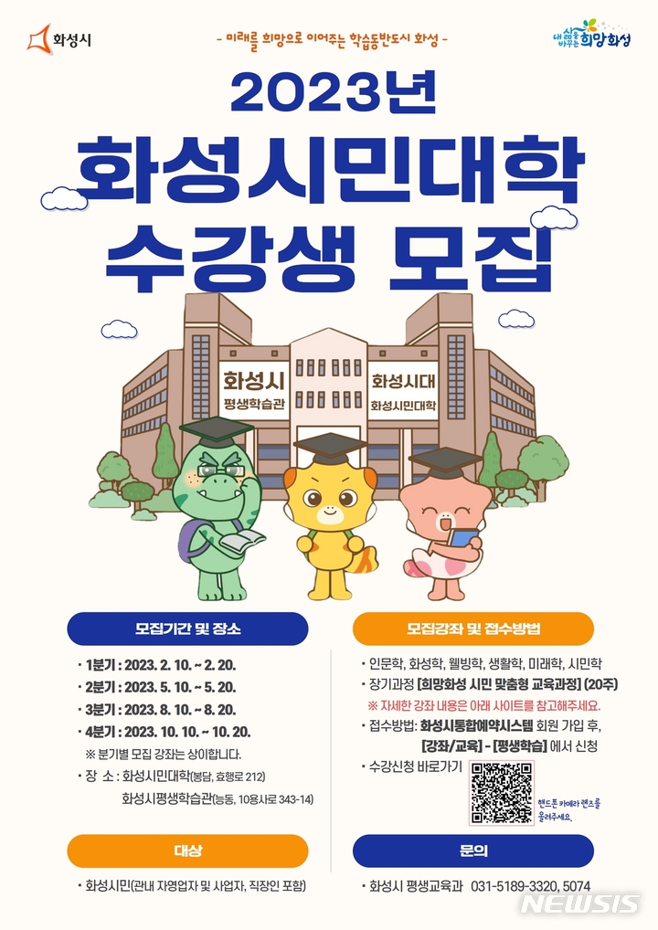 [화성=뉴시스] 정숭환 기자 = 경기 화성시는 9일 '2023년 화성시민대학 1분기 수강생'을 모집한다고 밝혔다.
