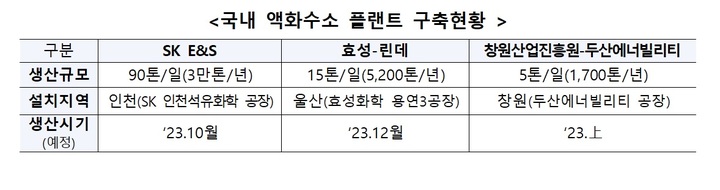 박일준 산업부 2차관은 "올해 액화플랜트 3곳을 준공하며 우리나라는 세계 최대 규모의 액화수소 생산설비를 갖추게 될 것"이라며 "우리 기업들이 액화 플랜트·기자재·충전소 등 기술역량 내재화와 기술개발 지원, 인프라 조성 등으로 뒷받침하겠다"고 말했다.