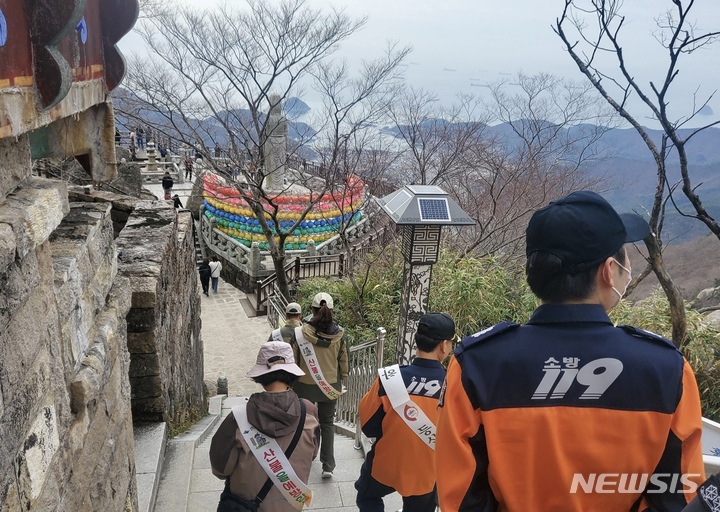 [남해=뉴시스] 차용현 기자 = 국립공원공단 한려해상국립공원사무소는 지난 18일 경남 남해군 금산 일원에서 산불예방 캠페인을 실시했다고 19일 밝혔다.