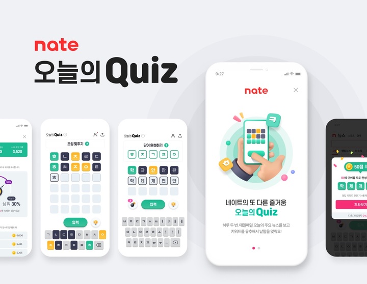 '오늘의 퀴즈'는 네이트 뉴스 내 주요 키워드의 초성을 맞추고, 최종 해당 단어를 맞추는 게임형 서비스로 하루에 두 번씩 출제된다. 이를 통해 시사성 높은 뉴스는 물론 일상 속 화제나 트렌드 소식 등을 새롭고 흥미로운 방식으로 제공하고자 한다.