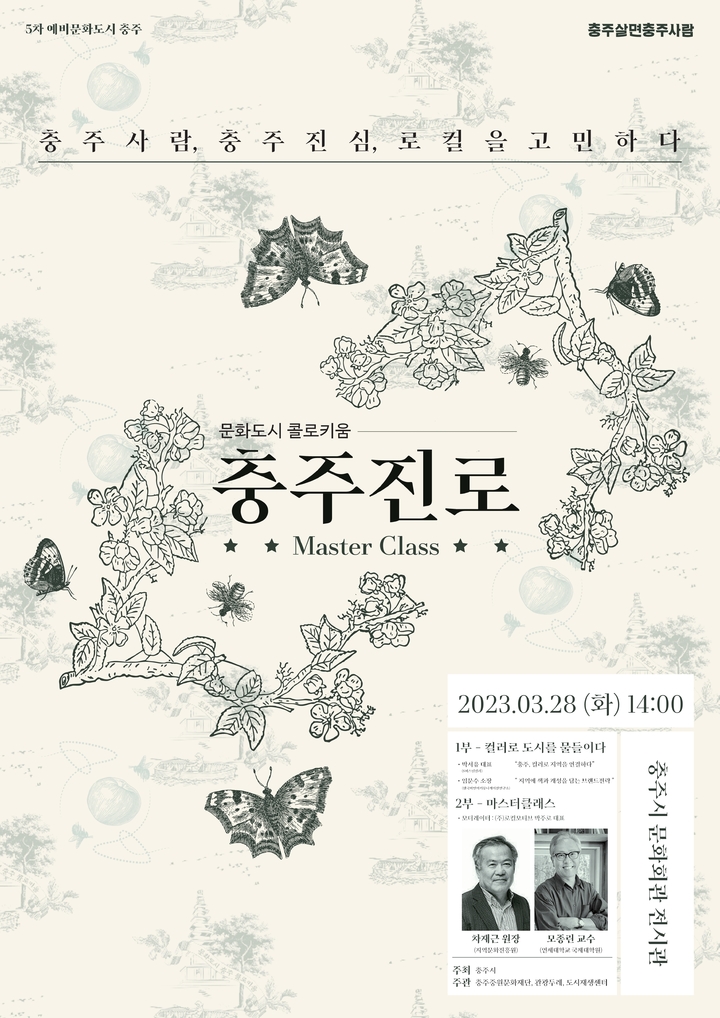 충북 충주중원문화재단은 오는 28일 충주시문화회관 전시실에서 2023 문화도시 콜로키움 '충주 진로'를 연다고 21일 밝혔다.