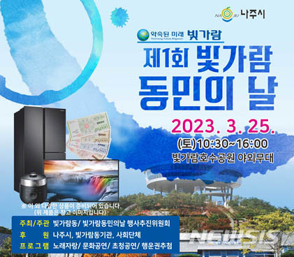 나주시는 오는 25일 나주 빛가람동 중앙호수공원 야외공연장에서 빛가람동 동민의날 행사추진위원회 주최로 '제1회 빛가람동 동민의 날 기념행사'가 열린다고 22일 밝혔다.