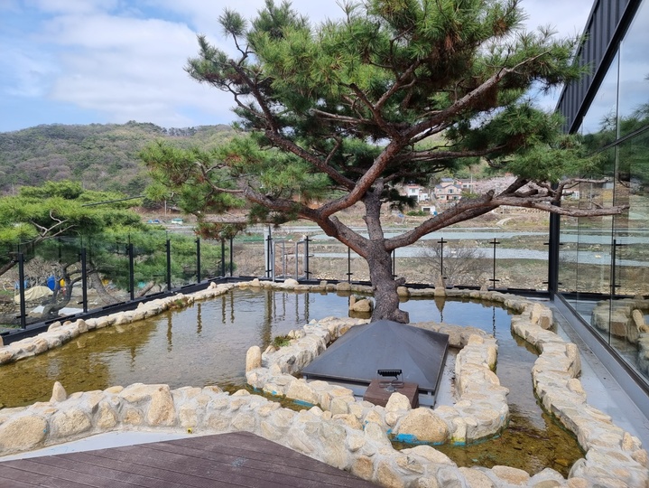 최초 시설공사로 사라져야 할 자연 그대로의 소나무를 훼손 없이 살려 카페 안에서 구경할 수 있는 장관을 연출해 정원카페의 명성다운 자연보호의 실천과 '장수의 상징' 마스코트로 자리를 잡았다.